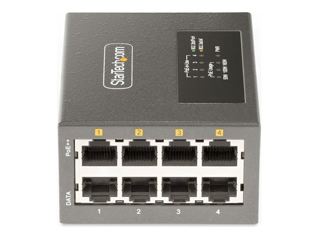StarTech.com 4-Port Multi-Gigabit PoE++ Injector, 5/2.5G Ethernet (NBASE-T), PoE/PoE+/PoE++ (802.3af/802.3at/802.3bt), 160Watts Power Budget, Wall/DIN Rail Mountable
