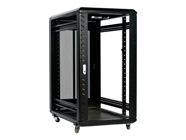 Ce rack de serveur fournit un espace de stockage de 22 unités de rack (22U) dans une armoire sécurisée et élégante, pour le stockage d'appareils 19" montables en rack, conformes à la norme EIA-310, tels que les serveurs Dell, HP et IBM ainsi que des équipements de télécommunication et audio/vidéo. Le rack constitue une solide solution de stockage qui prend en charge une capacité de charge totale de 800 kg .